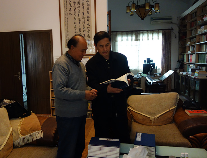 重庆博物馆访稿校对。(右起:陶艺、唐治泽、陈逸墨、黄河、黄建华。)近日,由钧天坊与中国书店出版社历时三年联合出品的“中国古琴文献研究丛书——《天闻阁琴谱》”正式出版面世。
